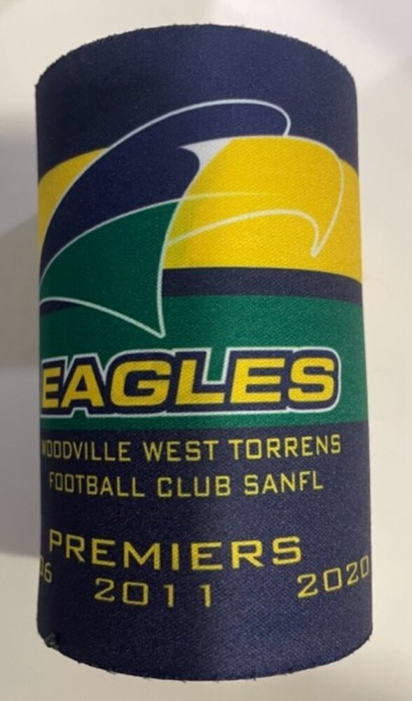 Blue stubby holder featuring logo and all Premiership years